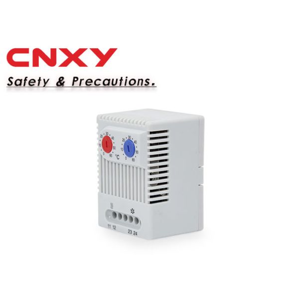 Thermostat closes at temperature rise - for regulating filter fans and heat exchangers or for switching signal devices. Comes with blue temperature dial.